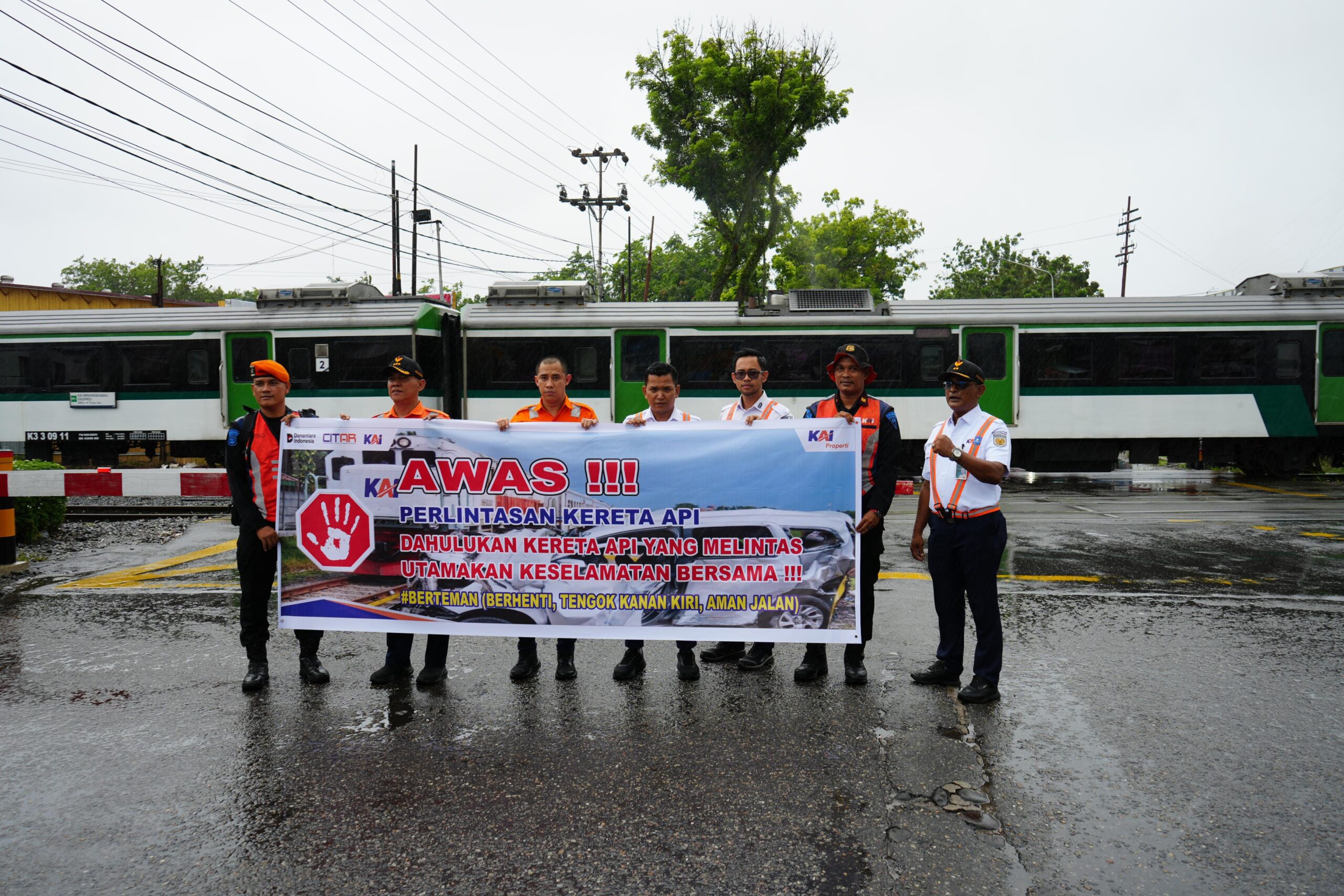 Di lokasi perlintasan, petugas KAI turun langsung menyapa pengguna jalan. Melalui pengeras suara, mereka mengimbau pengendara untuk selalu berhenti, menengok kiri dan kanan, serta mendahulukan perjalanan kereta api. Spanduk keselamatan dibentangkan, sementara stiker dan suvenir berisi pesan keselamatan dibagikan sebagai pengingat akan pentingnya kewaspadaan di jalur perlintasan.