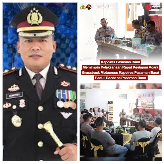 PASAMAN BARAT | Di balik seragam kepolisian yang tegas dan penuh tanggung jawab, Kapolres Pasaman Barat, AKBP Agung Tribawanto, S.I.K., terus memperlihatkan wajah Polri yang hadir untuk masyarakat. Salah satunya melalui gelaran rapat koordinasi pelaksanaan Grasstrack Motocross “Kapolres Pasbar Peduli Bencana”, sebuah agenda sport-sosial yang diharapkan mampu menyatukan semangat kemanusiaan dan solidaritas warga.