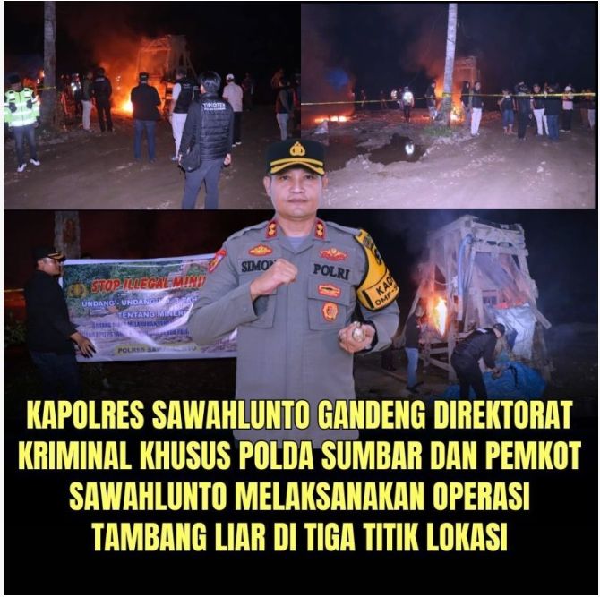 Operasi tersebut dipimpin langsung Kapolres Sawahlunto, AKBP Simon Yana Putra, yang turun ke lapangan bersama 128 personel gabungan dari Polres Sawahlunto, Direktorat Kriminal Khusus Polda Sumatera Barat, serta tim Tipidter. Langkah ini dilakukan sebagai bentuk keseriusan aparat dalam memberantas praktik tambang liar yang merusak lingkungan.