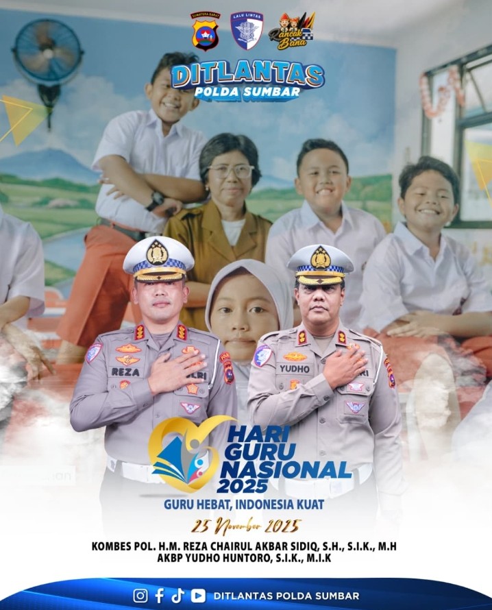 Peringatan Hari Guru Nasional ini menjadi bagian dari komitmen Ditlantas Polda Sumbar dalam mendukung dunia pendidikan, penguatan karakter pelajar, dan keselamatan siswa melalui program pembinaan dan edukasi berlalu lintas.