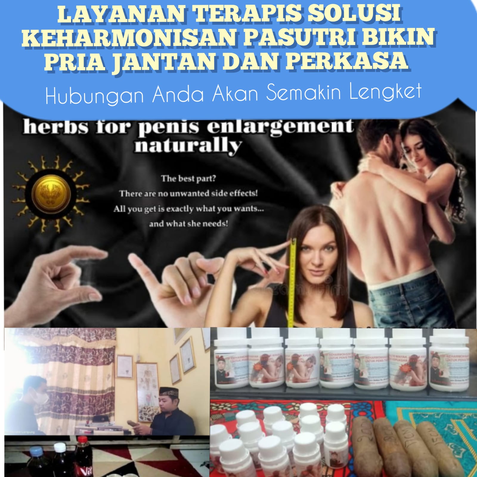 Anda punya keluhan seputar vitalitas sudah menurun, kurang percaya diri, sering lemas, loyo, susah ereksi karena diabetes, lemah syahwat, ejakulasi dini, cepat keluar, solusinya di sini. Metode pengobatannya terapis meliputi totok pijat dan urut yang dikombinasikan dengna ramuan herbal alami.
