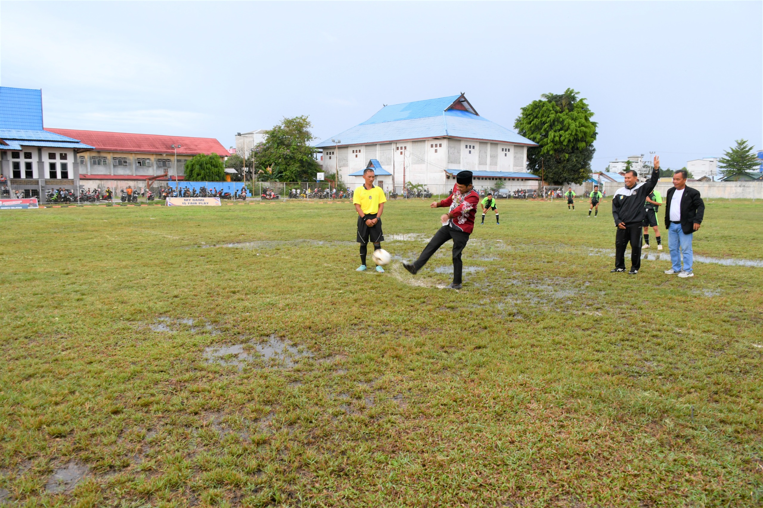 Pembukaan Sepak Bola Bupati Barito Selatan tersebut di awali tendangan oleh Wakil Bupati Barito Selatan Kristianto Yudha, ST.